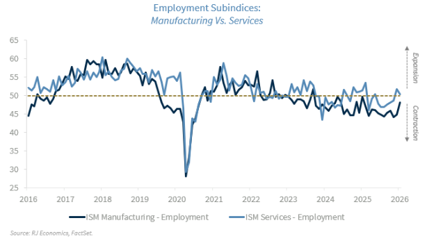 On the services side of the economy, we also got the ISM Services PMI, which pointed to a stable environment in this sector of the economy, as it remained in expansion and unchanged compared to the last month of 2025. The employment subindex showed some weakening but remained in expansion territory while the prices index deteriorated slightly once again, showing that price pressures remain an important concern for the largest part of the economy.